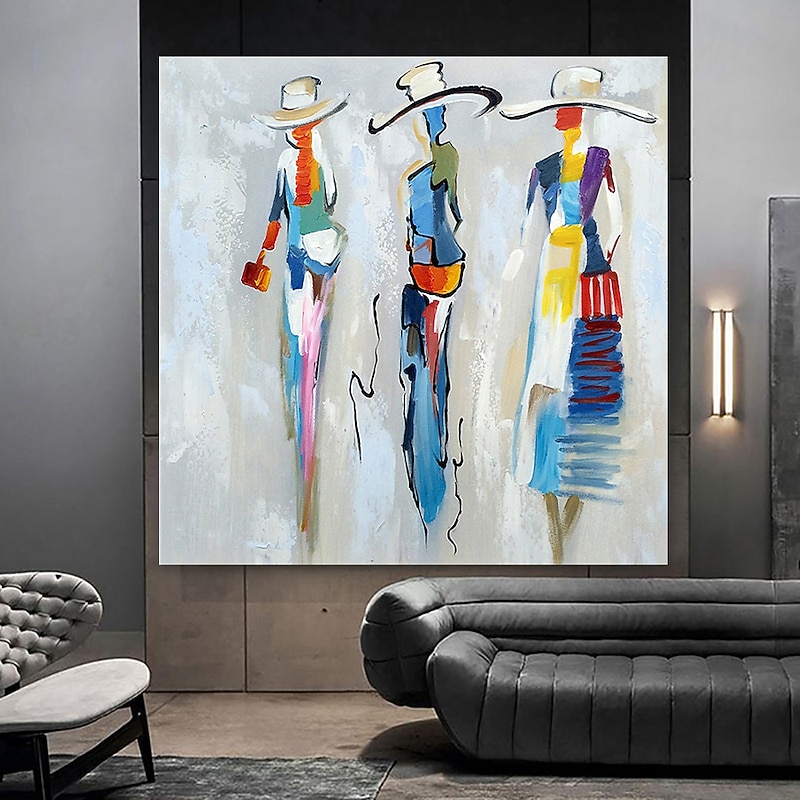 Oil Painting Hand Painted Square Abstract People iconic latest Rolled Canvas (No Frame)