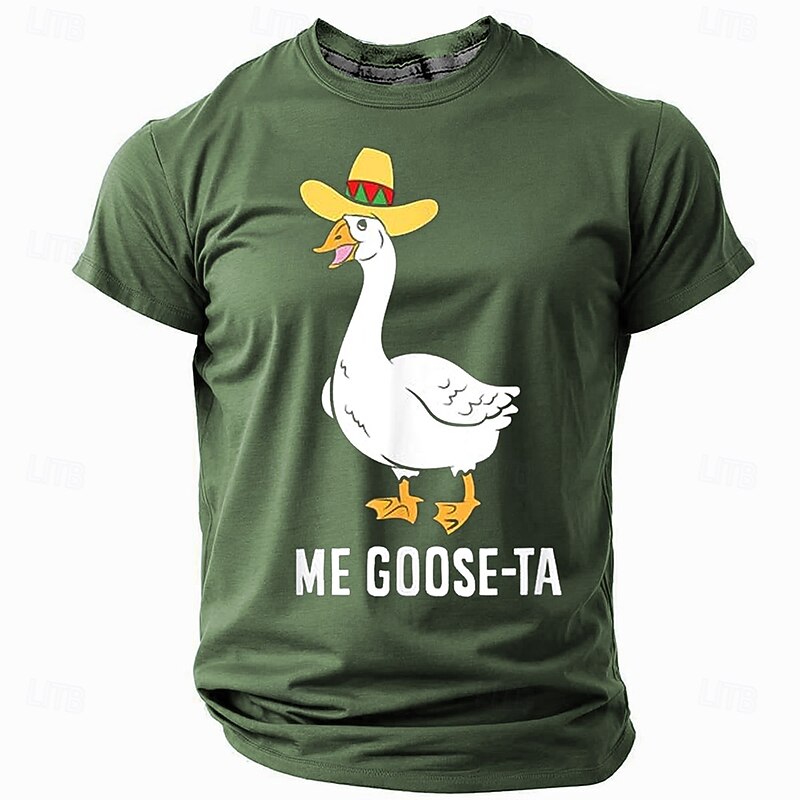 Highlights [Fabric] : This men's 3D print T-shirt is crafted from high-quality polyester, providing a lightweight yet durable feel. The fabric is designed to be breathable and micro-elastic, ensuring comfort during warmer months like spring and summer. [Fit] : Featuring a tailored fit, this T-shirt is designed to accommodate a variety of body types, offering a comfortable yet slightly fitted silhouette that enhances your natural shape. [Design Highlights] : The T-shirt features a playful and humorous design with an illustration of a duck wearing a colorful sombrero, complemented by the punny phrase ME GOOSE-TA. The crew neck and short sleeves create a timeless and versatile look, while the dark color options add a fashionable edge. The 3D print technique brings the graphic to life, providing vibrant and lasting colors. [Occasions] : Perfect for streetwear and casual outings, this T-shirt is ideal for those who enjoy adding a touch of humor to their athleisure wardrobe. It's suitable for weekend gatherings, casual meet-ups, or any occasion where comfort and style are desired. [Size Range] : Available in a wide range of sizes, including S, M, L, XL, XXL, and XXXL, this T-shirt caters to a broad audience, ensuring a perfect fit for everyone. Perfect for everyday use. excellent materials and excellent craftsmanship ensure long-lasting durability.